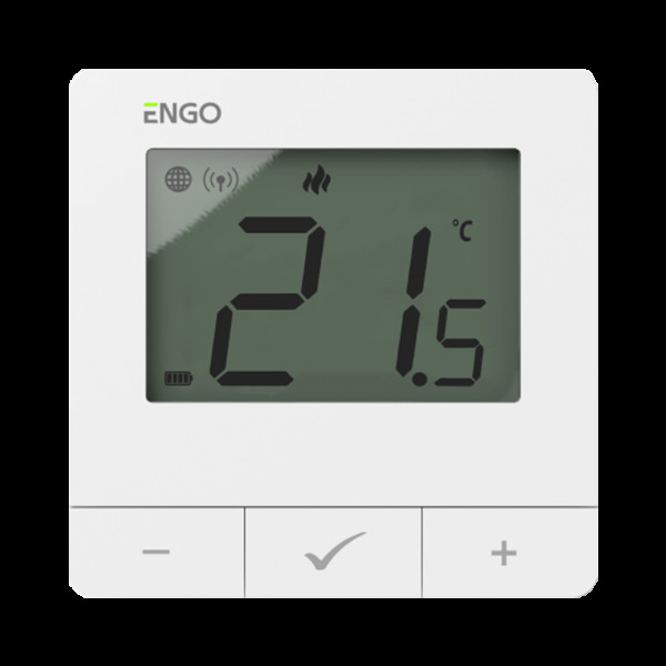 Терморегулятор поверхневого монтажу, який використовується для керування системою теплої підлоги та радіаторного опалення. Простий в установці та експлуатації і зручний для користувача. Живлення від батарейки (2xAA). Програмований і керований через додаток ENGO Smart, використовуючи шлюз ZigBee 3.0 – EGATEZB. Контролери можуть бездротово керувати різними пристроями ZigBee (наприклад, бездротовий центр комутації ECB62ZB, модуль EMODZB, EREL1ZB12A реле, EREL1ZB16A або головки ETRV). Версія 230 В також працює як автономна і може бути підключена безпосередньо до приймача (наприклад, дротовий центр комутації).