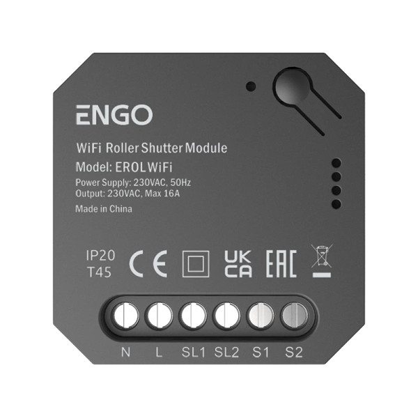 Контролер з вбудованим Wi-Fi призначений для керування приводами віконних жалюзі та штор у розумному будинку. Забезпечує безперебійну роботу навіть великих, вимогливих двигунів – максимальне контактне навантаження до 16(5)A. Пристрій надає можливість програмувати обрані режими роботи за допомогою мобільного додатку ENGO Smart. Дозволяє відсоткове (поступове) відкривання і закривання жалюзі, що підвищує комфорт їх щоденного використання. Універсальний, компактний, довговічний продукт.