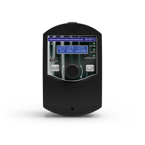 Контроллер TECH ST-27i предназначен для управления циркуляционным насосом центрального отопления а также дополнительным насосом (ГВС или полового отопления). Задачей насоса является включение насоса центрального отопления, если температура пересечет пороговое значения включения и выключение, в случае, если котел остынет (в случае гашения). Для второго насоса, кроме температуры включения, пользователь устанавливает заданную температуру, до достижения которой насос будет работать.