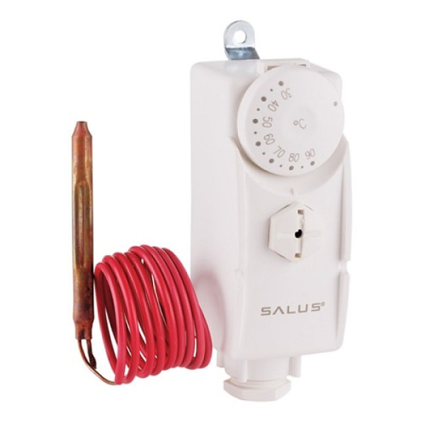 SALUS AT10F - доступный, простой и практичный механический термостат с выносным датчиком (90 см), предназначен для управления циркуляционным насосом или 2-х, 3-х ходовым клапаном с электроприводом в системах отопления или ГВС.