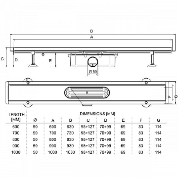 Душевой канал d50, 1000мм, под плитку Capricorn