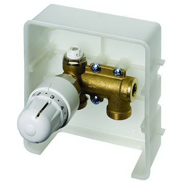 Задание температуры происходит на термостатической головке в диапазоне от 10 до 50 °С. Для удобства термостатичекая головка выглядывает из-за корпуса комбибокса.