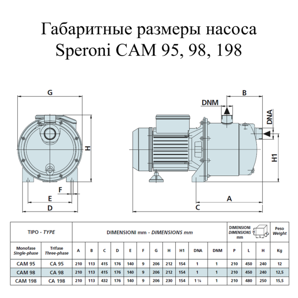 Самовсасывающие водяные насосы Speroni серии CAM с большой