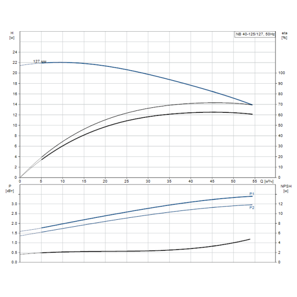 Несамовсасывающий, одноступенчатый, центробежный, насос NB 40-125/127 A-F2-A-E-BAQE со спиральной направляющей камерой разработан в соответствии с ISO 5199, при этом его размер и номинальная мощность соответствуют EN 733 (10 бар). Фланцы - PN 16 с размерами в соответствии с EN 1092-2.