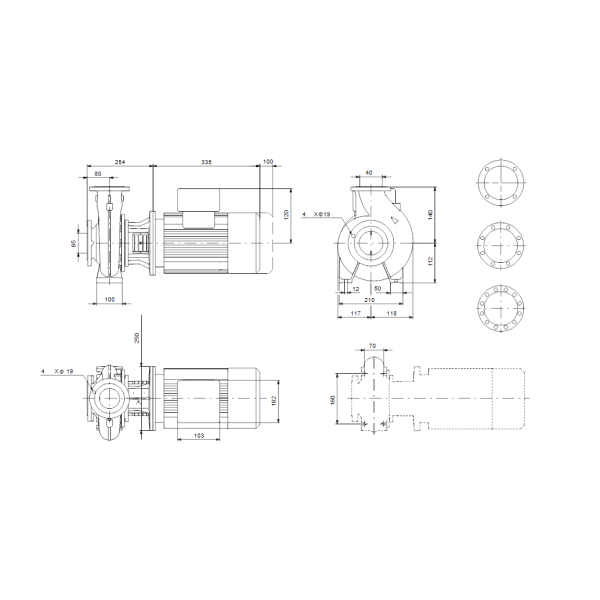 Насос имеет осевой всасывающий патрубок, радиальный напорный патрубок, горизонтальный вал и конструкцию со съёмной задней частью, обеспечивающей возможность демонтажа электродвигателя, фонаря, крышки и рабочего колеса без демонтажа корпуса насоса или трубопроводов.