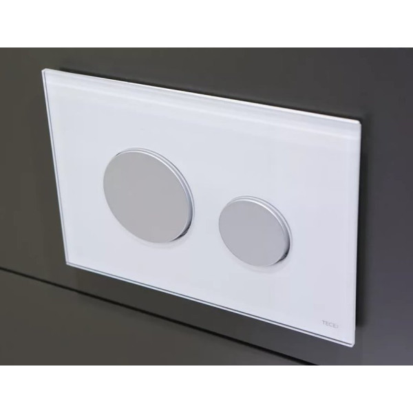 TECEloop панель смыва с двумя клавишами стеклянная, стекло белое, клавиши хром матовый;