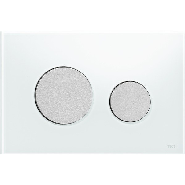 Панель двойного смыва для унитаза TECEloop, белое стекло, кнопка матовый хром TECE