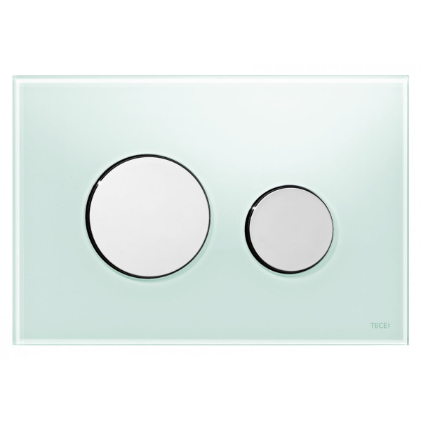 Панель двойного смыва для унитаза TECEloop, зеленое стекло, кнопка глянцевый хром TECE