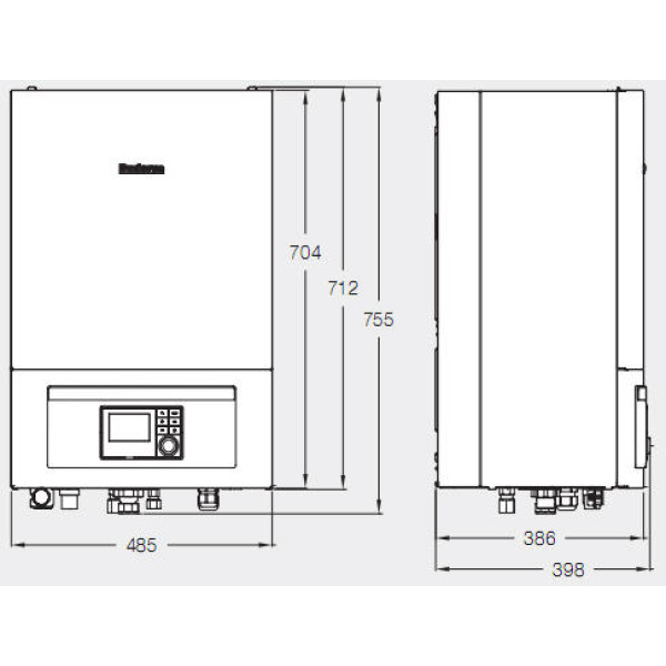 Тепловой насос Bosch Compress 3000 AWES состоит из наружного блока (теплового насоса), устанавливаемого на улице, и внутреннего блока (гидроблока), монтируемого внутри помещения.