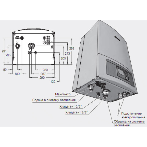 - электрический нагреватель 9 кВт (ступени: 2 /4 / 6 / 9 кВт);