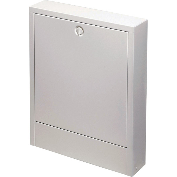 Компактный прочный наружный коллекторный шкаф, выполнен из оцинкованной листовой стали толщиной 1 мм, соответствующей DIN EN 10327/10143, с C-образной направляющей для монтажа коллекторов отопительных контуров. Имеет высококачественное эпоксидное полиэфирное порошковое покрытие, RAL 9010.