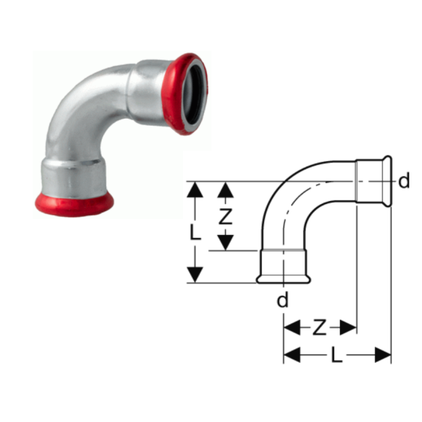 Колено пресс-фитинговое оцинкованное 90° 108 мм