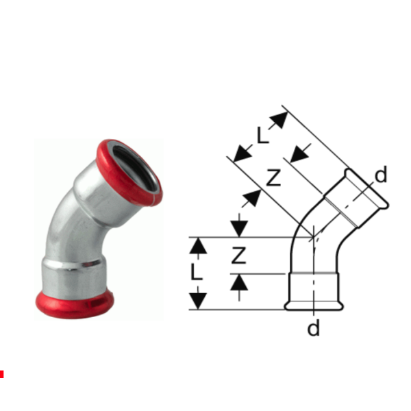 Угольник пресс-фитинговый оцинкованный – это элемент трубопроводной системы, предназначенный для соединения труб под прямым углом. Изготовлен из углеродистой стали с оцинкованным покрытием, что обеспечивает высокую стойкость к коррозии и долговечность. Совместим с трубами диаметром 15 мм и соответствует профилю M.