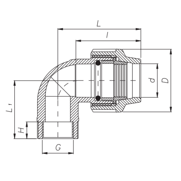 Колено с внутренней резьбой 32х3/4" Unidelta
