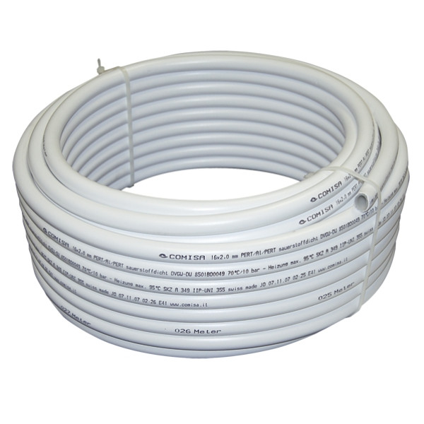 Трубы металлополимерные Comisa PERT-AL-PERT представляют собой пятислойную конструкцию, внешний и внутренний слой которой выполнен из PE-RT II типа (полиэтилена повышенной термостойкости).