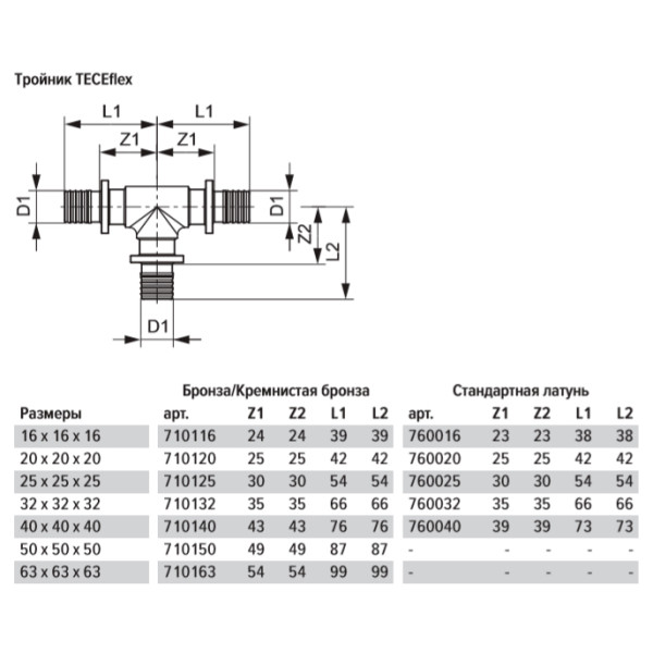 Тройник TECEflex 25x25x25 мм латунный (арт. 760025) позволяет создать боковое ответвление от основной трубы TECEflex 25 из сшитого полиэтилена под углом 90°. Соединение с трубой осуществляется методом аксиальной запрессовки с использованием пресс-втулок.