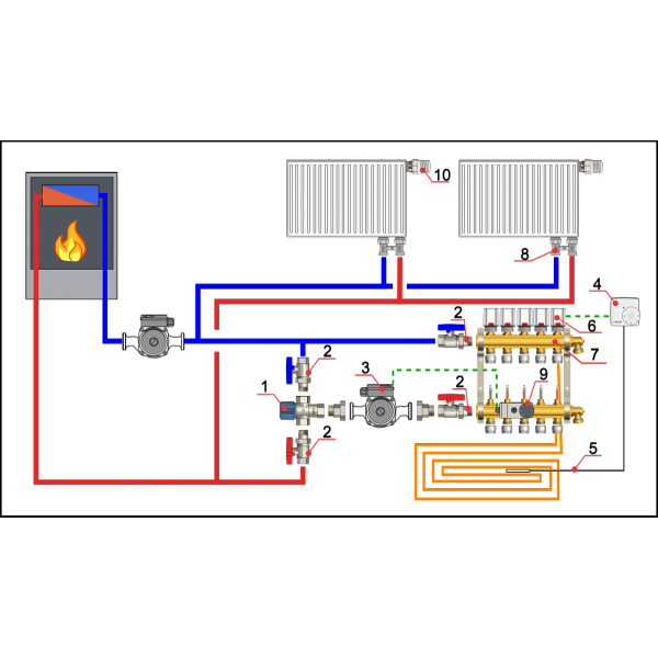 Термостатичний підмішуючий клапан для підлогового опалення. 10 позицій передустановки