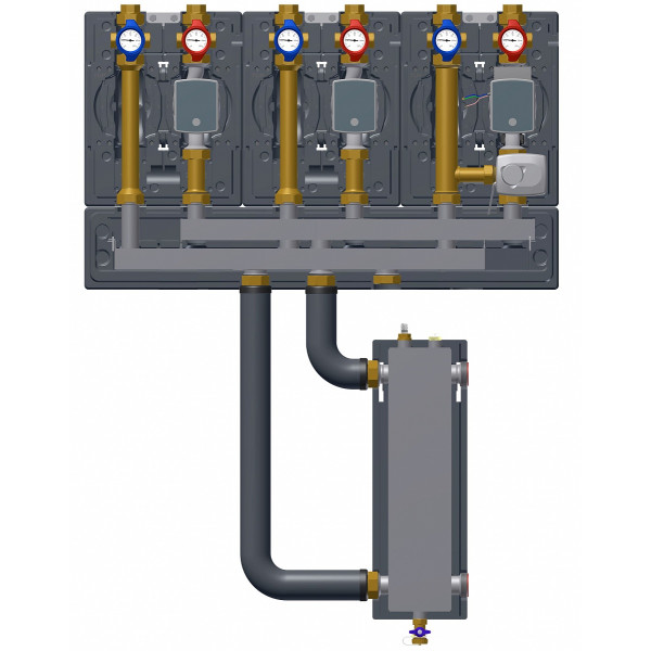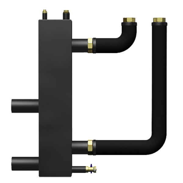 Готова до монтажу, компактна гідравлічна стрілка, що складається з прямокутного металевого профілю зі штуцерами для підключення зливного крана, повітро-відвідника і погружной гільзи.