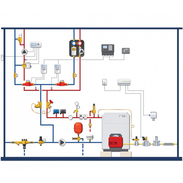 Група безпеки для котла WATTS KSG 30N включає три елементи (манометр, воздухоотводчик, запобіжний клапан), закріплених на одній консолі. Манометр MH R63 / 4-3 / 8" аксіальний, підключення⅜", діаметром 63 мм, дозволяє візуально контролювати тиск в системі опалення. Поплавковий воздухоотводчик збирає бульбашки повітря і періодично скидає повітря назовні. Запобіжний клапан при перевищенні встановленого значення 3 Бар відкривається і скидає надлишок теплоносія. Підключення групи безпеки до трубопроводу через внутрішню різьбу 1 " на інтегральній латунної консолі.