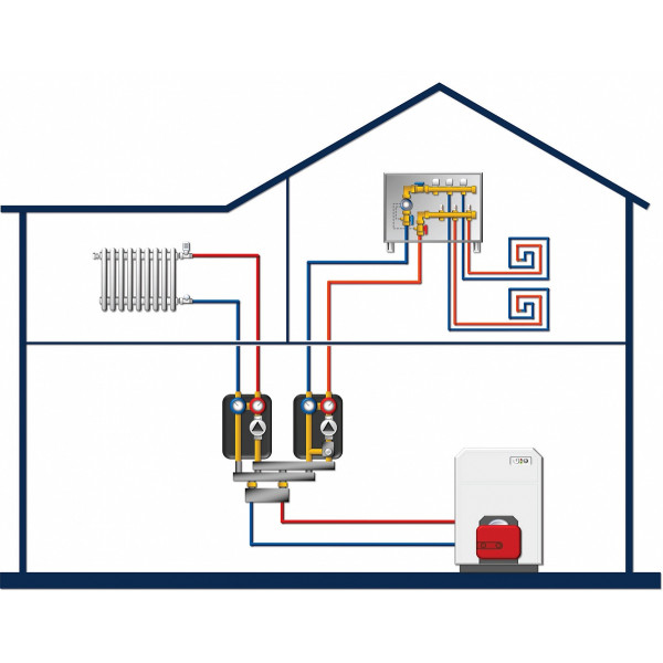 Компактний колектор VB32 призначений для підключення насосних модулів PAS, PASM і HKF як DN25, так і DN32. Готовий до монтажу. Кожух з спіненого поліпропілену EPP, міжкамерна вкладка (термічний поділ камер подає і зворотної лінії). Самоущільнюючі підключення з накидними гайками 1 1/2" для насосних модулів, підключення до первинного контуру 1 1/2 " НР.