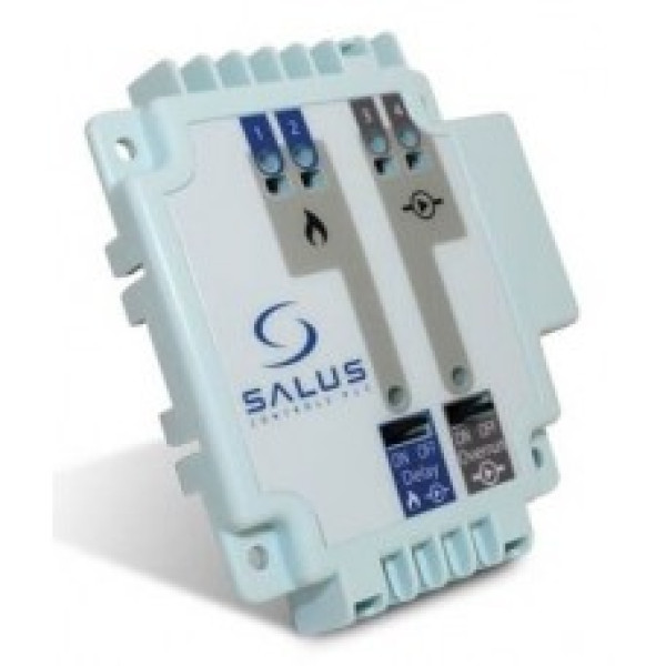 Модуль Salus PL7 для управління циркуляційним насосом і котлом є опцією для центру комутації KL06. Модуль призначений для відключення циркуляційного насоса і котла, коли запит на нагрів відсутній у всіх 6-ти контрольованих зонах.
