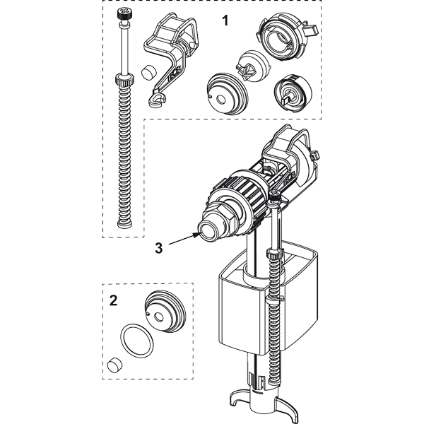 Заливний клапан F 10 підходить практично для всіх стандартних зливних бачків прихованого монтажу і підлогових унітазів зі стандартним з'єднанням 3/8 дюйма. Заливний клапан відповідає вимогам звукоізоляції акустичної групи 1 і заповнює зливний бачок безшумно.