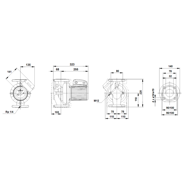 Розшифровка типового позначення циркуляційного насоса Grundfos UPS X-Y, де X-номінальний діаметр всмоктуючого і напірного патрубка в мм, а Y-максимальний напір в дм.