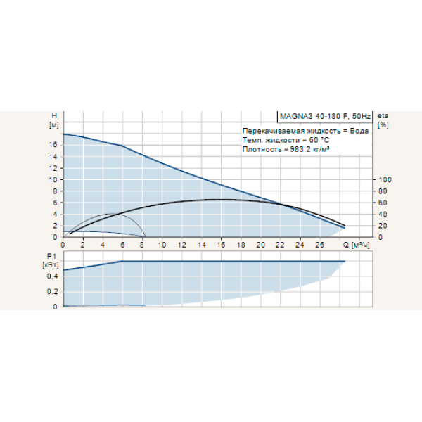 Характеристики насоса наступні: • контролер, вбудований блок управління • панель управління з TFT-дисплеєм на блоці управління • блок управління розрахований на опціональні CIM-модулі • вбудовані датчик перепаду тиску і температури • чавунний корпус насоса (в залежності від моделі) • кожух ротора з композиційного матеріалу, армованого вуглецевим волокном • опорний диск підшипника і оболонка ротора з нержавіючої сталі • кожух статора з алюмінієвого сплаву • силова електроніка з повітряним охолодженням MAGNA3 є однофазним насосом.