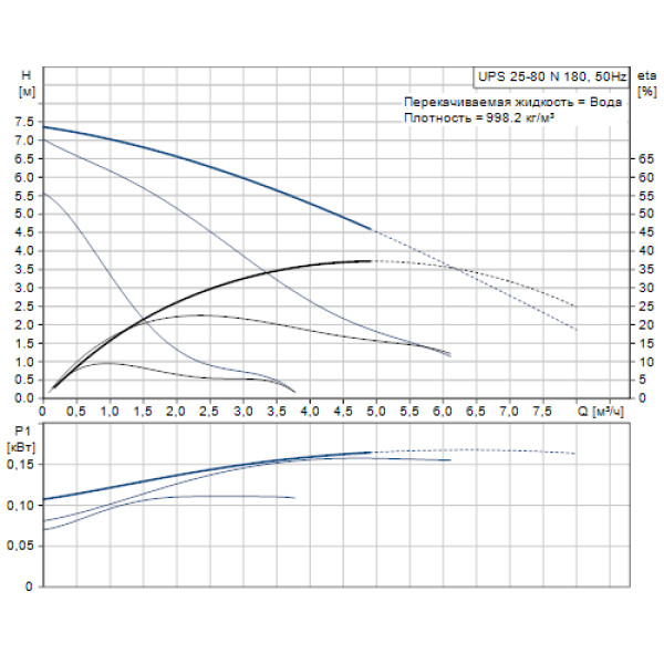 Циркуляційні насоси Grundfos UPS 25-80 N 180 використовуються для циркуляції води або глікольвмісних рідин в системах опалення та кондиціонування. Циркуляційні насоси GRUNDFOS серії 100 UPS – високопродуктивне обладнання для опалювальних систем побутового, комерційного призначення. Насоси комплектуються трьома швидкісними режимами, потужністю 50, 60 Гц, герметизованим ротором, які не мають спеціалізованого ущільнення. Обладнання підходить для замкнутих систем і незамкнутих. Мастило підшипників, захист мотора від перегрівів здійснюється робочою рідиною. Корпуси насосного обладнання зроблені з чавуну, захищені від корозії лакофарбовим покриттям, патрубки мають ідентичні діаметри і розташовані в протилежних напрямках. Підшипники насосів керамічні, що утворюють мінімум шумів і підвищують довговічність обладнання.