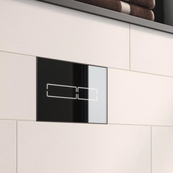 Датчик определяет, когда человек приближается к унитазу, затем включает подсветку клавиш смыва. Привод смыва включается с помощью сенсорной панели или с помощью касания области клавиш. С помощью пульта дистанционного управления TECElux Mini для программирования (арт. 9240971) можно настроить функции с учетом индивидуальных требований.