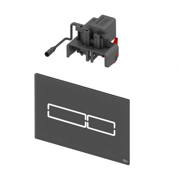 Электронная панель смыва TECElux Mini с бесконтактным приводом для стандартных сливных бачков TECE (глубина установки 13 см) с фронтальной установкой на высоте приблизительно 1 м (центр панели смыва). Привод с плоским стеклом, включая крепежные элементы и электродвигатель привода для систем двойного смыва. Подходит для монтажа на уровне стены. Совместима с контейнером для гигиенических таблеток. Для TECElux Mini требуется подключение электропитания.