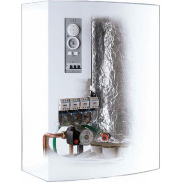 Загальне макс. споживання: 18,1 кВт Мінімальний перетин проводів живлення: 5х6 кВ. мм Розташування спіралей: 6+6+6 кВт Регулювання вихідної потужності: 6-12-18 кВт Об'єм води в котлі: 9,5 л Об'єм розширювального бака: 7 л ККД: 99% Макс. температура нагрівання води: 90°C Макс. робочий тиск: 2,5 бар Хв. Робочий тиск: 0,8 бар Діаметр вхідної / вихідної труби (зовнішньої різьби): G 3/4 Ступінь захисту: IP 40 Тип запобіжника в котлі: 63 А Автоматичний запобіжник для кола котла: 32 А Автоматичний випуск повітря з котла Повністю автоматична робота Запобіжний клапан Контактори з низьким рівнем шуму Регулювання кімнатними терморегуляторами |
