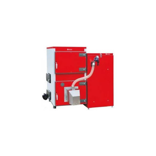 MAXPell Duo - двох топковий котел, верхнього горіння. У задній частині котла знаходиться камера для спалювання палива на чавунних колосниках в напівавтоматичному режимі з ручною закладкою палива, вона відокремлена від камери автоматичного спалювання водонаповненими трубами. Для доступу в камеру напівавтоматичного спалювання призначені дві дверцята. Верхня призначена для засипання палива, Нижня для видалення золи. Наддув в камеру ручного спалювання здійснюється додатковим вентилятором, встановленим в дверцята камери. В автоматичному режимі паливо на пальник подається порційно. Основний тип палива-пелети, спалюється в автоматичному режимі. Додатковий тип палива-це вугілля, дрова, брикети, спалюється в напівавтоматичному режимі. Котел призначений для опалення великих площ, різного призначення, площа приміщення, від 900 до 3000 м2 (300 кВт).