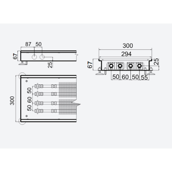 Внутрішньопідлоговий конвектор KEM.300 з природною конвекцією, c двома теплообмінниками.