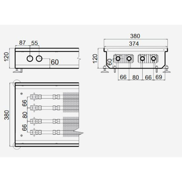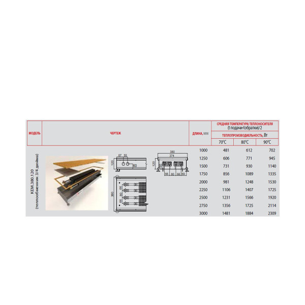 Внутрішньопідлоговий конвектор KEM.380.120 з природною конвекцією, c двома теплообмінниками, Висота-120 мм.
