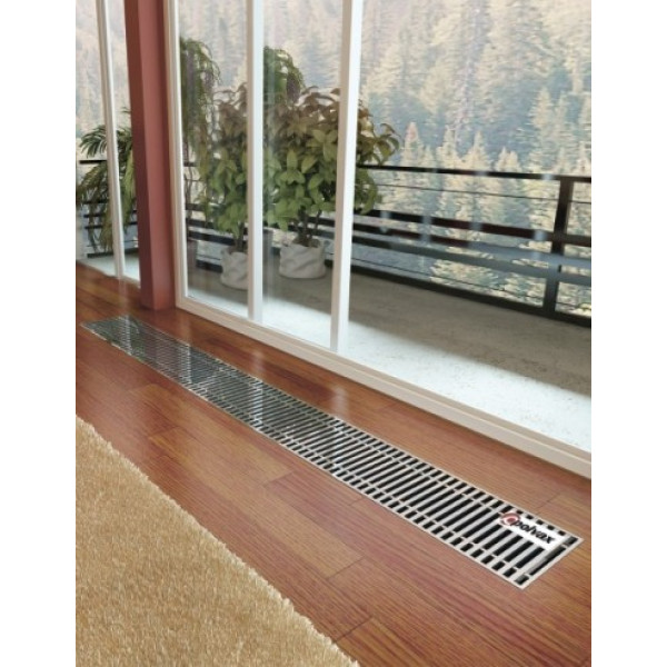 Polvax c примусовою конвекцією - це моделі які відрізняються підвищеною тепловіддачею. Такі конвектори встановлюють в приміщеннях з панорамними вікнами, скляними стінами, скрізь там, де багато скління. Так як такі прилади зможуть рівномірно ефективно обігріти такі кімнати, в той час як звичайний радіатор з цим не впорається. Конвектор захистить вікна від конденсату. Короб конвектора не нагрівається більше 45 С. декоративна решітка дуже міцна і витримає до 120 кг, тому можна сміливо по ній ходити. Решітка виступає як декоративна частина інтер'єру і захист теплообмінника. Її колір можна підібрати по палітрі кольорів RAL, або вибрати варіант зі стандартної гами. Чистити внутрішньопільні конвектори Polvax досить легко-варто тільки зняти решітку (вентилятори при цьому повинні бути вимкнені) і витерти пил.