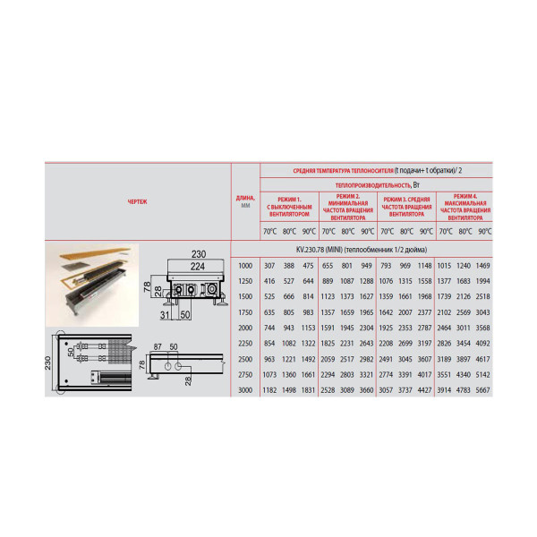 - KVM-внутрішньопідлогові конвектори з двома теплоносіями + вентилятор Standart або Premium.