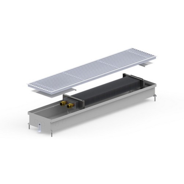 Конвектор Внутрішньопідлоговий с призначений для установки в підлогу. Конструкція складається з сталевого корпусу і теплообмінника з міді та алюмінію. Короб не піддається корозійним процесам, що продовжує довговічність обладнання.