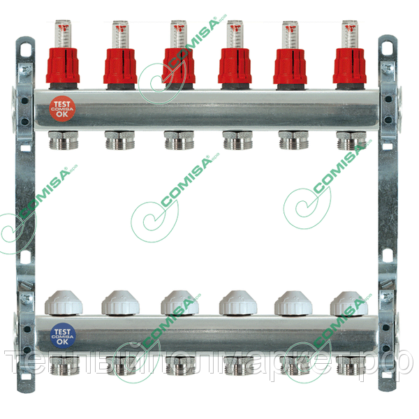 В одному блоці об'єднані подає колектор і поворотний. На першому, що забезпечує подачу теплоносія до контурів, встановлені витратоміри, що спрощують здійснення контролю над пропорційною витратою теплоносія в будь-якому з контурів, моніторинг напору і температури. Витратоміри допомагають точно налаштувати температуру, тиск потоків в окремих гілках, налагодити роботу частин системи теплопостачання. Колектор Comisa безпечний, ремонтопридатний, легко модернізується за допомогою сервоприводу.