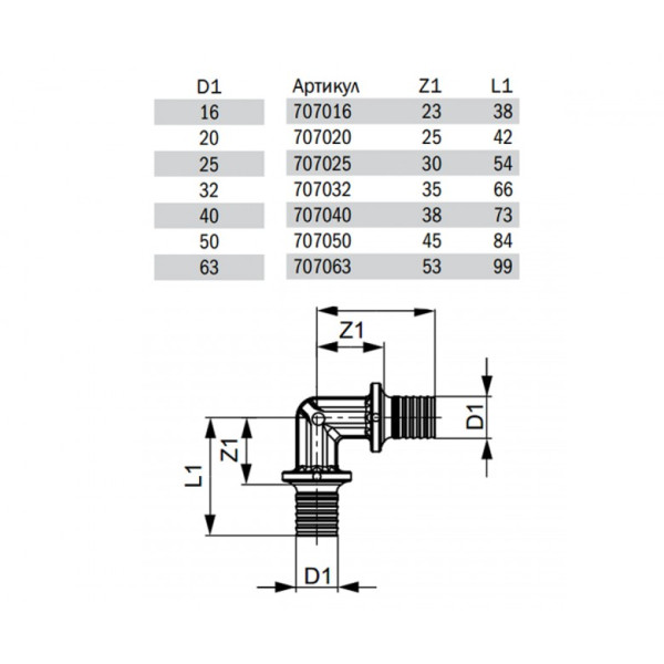Кутник з'єднувальний 90°, латунь 63 TECE