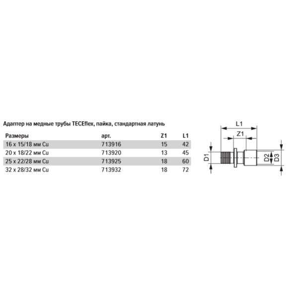 Адаптер на мідну трубу (пайка) TECEflex 25 мм TECE