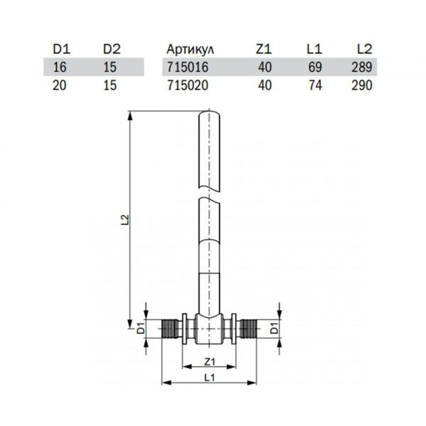 Трубка мідна для підключення радіаторів, "Т" подібна, нікельована, 16 х 15, L = 330 мм