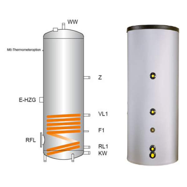 Вертикальні ємнісні емальовані бойлери непрямого нагріву Huch EBS-PU призначені для приготування гарячої води в поєднанні з водогрійними котлами, системами централізованого теплопостачання.